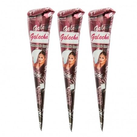 Apportez une touche d’authenticité à vos créations avec ce lot de 3 cônes de henné naturel Golecha. Chaque cône contient environ 25 g de pâte de henné prête à l’emploi, idéale pour les décorations de mains, de pieds ou de toute autre partie du corps. La formulation naturelle signée Golecha offre un rendu brun profond et une excellente tenue.